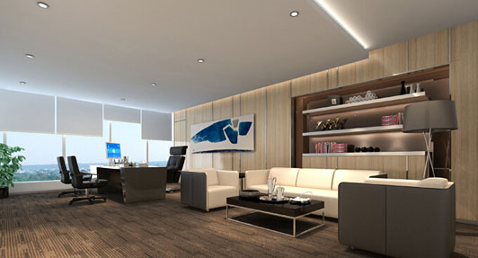 這是它的經(jīng)理辦公室裝修,高級線條進口地毯是它最大的裝修特色,這能體現(xiàn)高檔辦公室豪華裝修的品質(zhì),展現(xiàn)它的豪華高貴。雖然經(jīng)理辦公室裝修采用了平面石膏板天花,但這不影響它的裝修效果。頂級的軟裝家具燈飾提高了它的附屬價值,辦公室豪華裝修就是這樣來的。