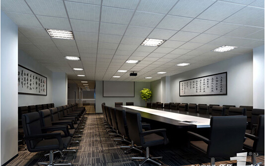 由圖可以看出,代表古國文明的長條裝飾畫,我們還可以在它的會議區的裝修上領略到中華書法的獨特魅力,層次感強的超級辦公裝修,形成一個多元化。
